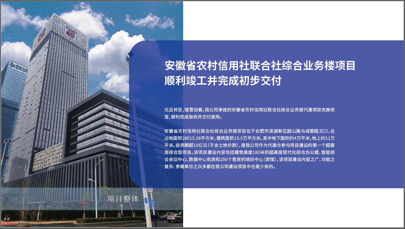 安徽省農(nóng)村信用社聯(lián)合社綜合業(yè)務(wù)樓項(xiàng)目順利竣工并完成初步交付