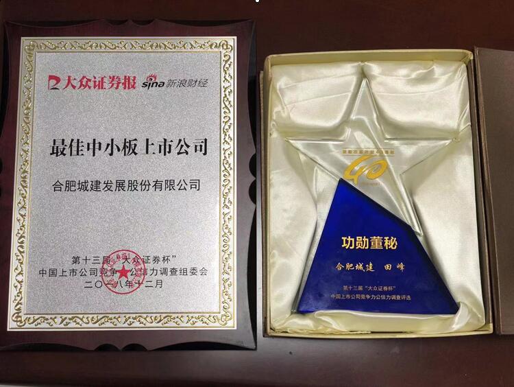 合肥城建榮獲中國A股上市公司創(chuàng)新指數(shù)百強(qiáng)榜----最佳中小板上市公司